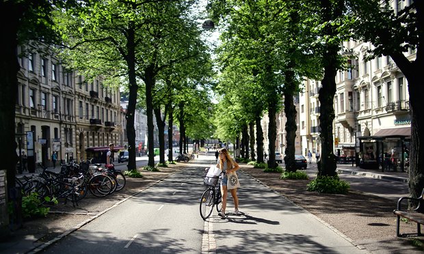 ‘In areas with more trees, people get out more’: a tree-lined street in Gothenburg. Photograph: Souvid Datta for the Guardian